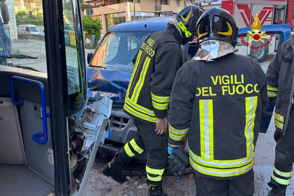 GROTTAMMARE – Intervento di una squadra dei vigili del fuoco del Distaccamento di San Benedetto del Tronto, questa mattina poco prima delle 8, per un incidente avvenuto lungo la Strada Statale 16 nel territorio di Grottammare. Per cause ancora in fase di accertamento, una vettura e un autobus snodato si sarebbero scontrati frontalmente. Sul posto i pompieri hanno prestato assistenza all’autista della macchina, che è stato successivamente preso in cura dai sanitari. È stato verificato subito lo stato di circa sessanta passeggeri dell’autobus, quasi tutti studenti minorenni e molti dei quali diretti a scuola: tre di loro sono stati sottoposti a controllo da parte del personale del 118. Presenti anche gli agenti della Polizia locale. I vigili del fuoco hanno poi provveduto a mettere in sicurezza la zona coinvolta.