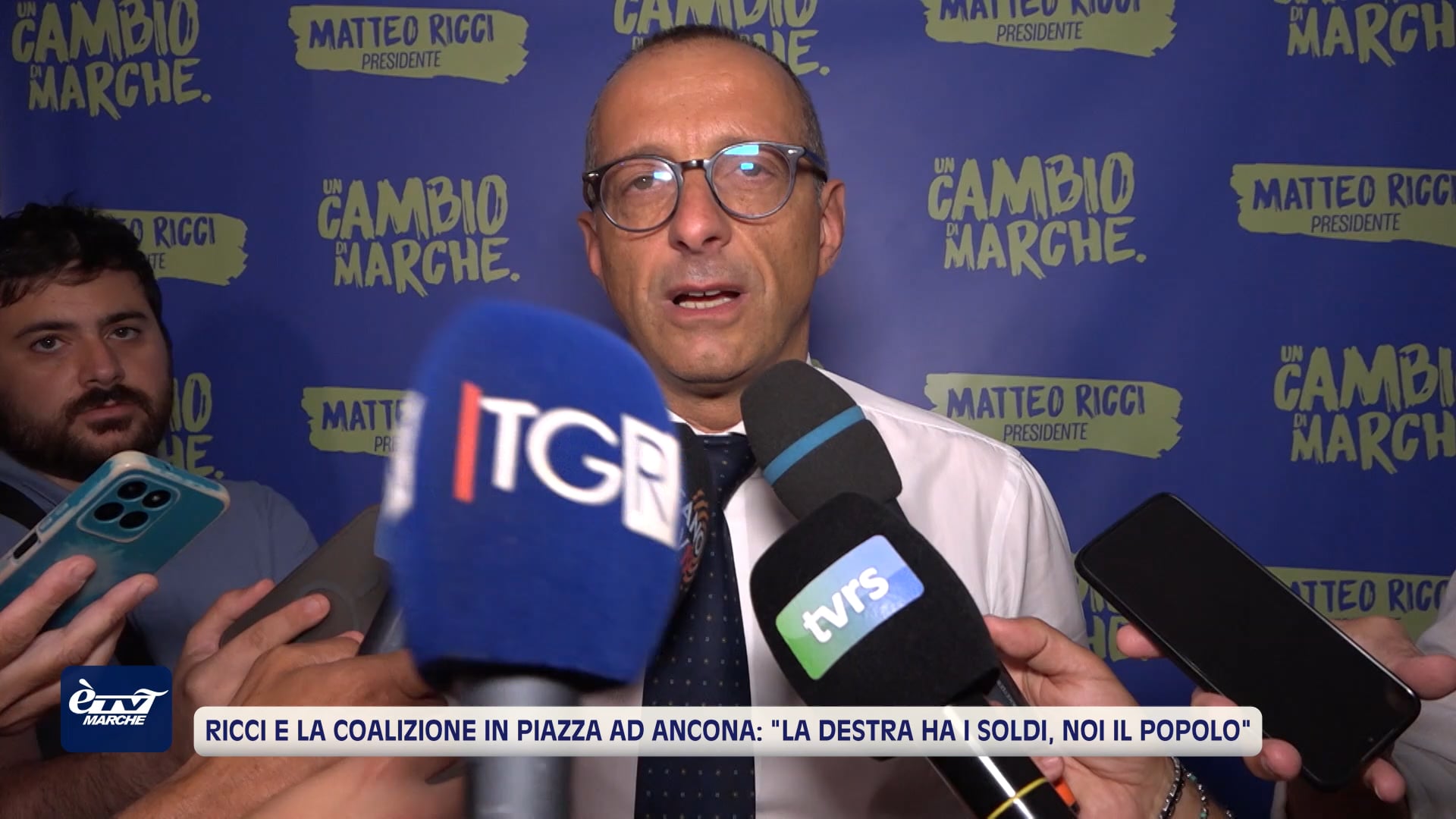 Matteo Ricci, eurodeputato del Partito democratico e candidato della coalizione di centrosinistra a presidente della Regione Marche, sceglie di passare tra le persone prima di salire sul palco. È la serata del comizio nel capoluogo per lanciare la sfida al presidente della Regione, Francesco Acquaroli, in vista delle elezioni regionali che si terranno in autunno