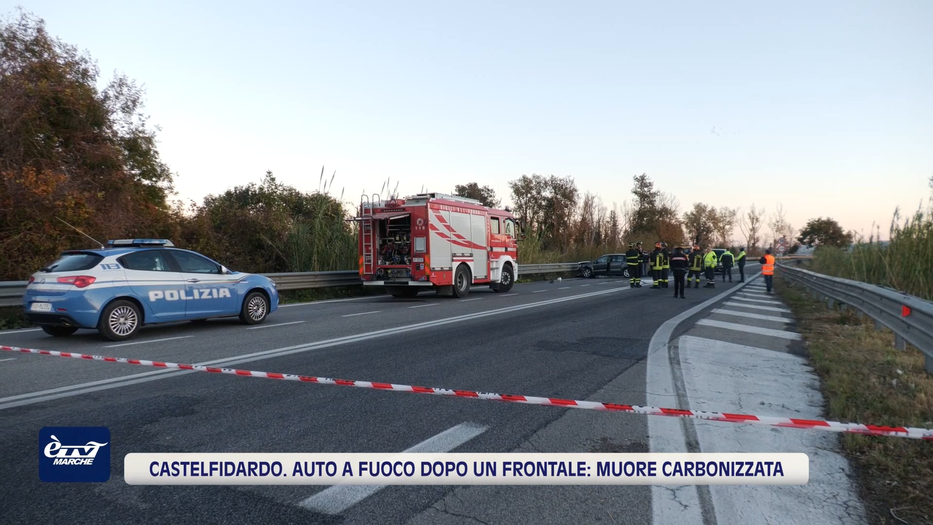 Di un'auto è rimasto solo lo scheletro, carbonizzato. Dell'altra la distruzione della parte frontale. Statale 16, comune di Castelfidardo: è qui che attorno alle 14,30 di martedì è avvenuto il tremendo frontale tra due auto. A perdere la vita una donna