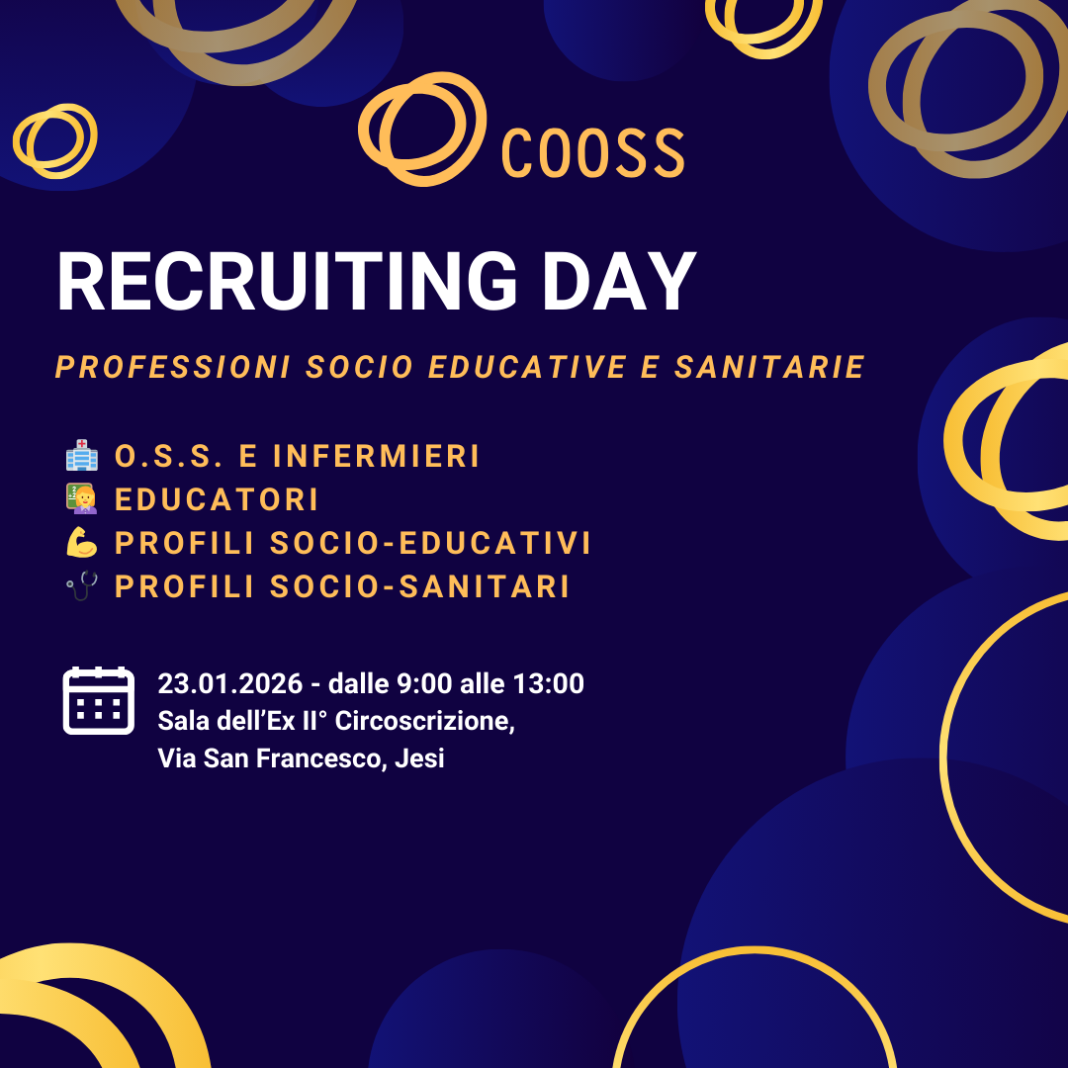 Un appuntamento da non perdere per chi è alla ricerca di nuove opportunità nel settore socio-sanitario e socio-educativo. COOSS organizza un recruiting day dedicato a: educatori, infermieri, operatori socio-sanitari (OSS), fisioterapisti e profili socio-educativi e socio-sanitari che hanno piacere di mettersi alla prova in una nuova avventura.