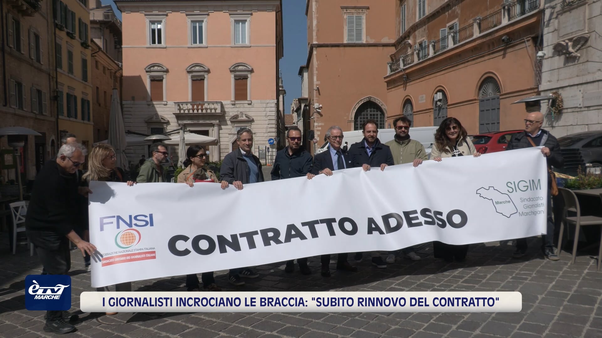 Il rinnovo del contratto di lavoro Fnsi-Fieg, ormai fermo da dieci anni, il recupero salariale, la difesa dei diritti e della dignità della professione, fino ad arrivare all’approvazione dell’equo compenso. Sono le questioni poste da giornaliste e giornalisti marchigiani che, il 16 aprile, hanno aderito alla terza giornata di sciopero indetto dalla Federazione nazionale della stampa. In piazza del Plebiscito ad Ancona, nell’occasione, si è svolto un flash mob promosso dal Sigim.