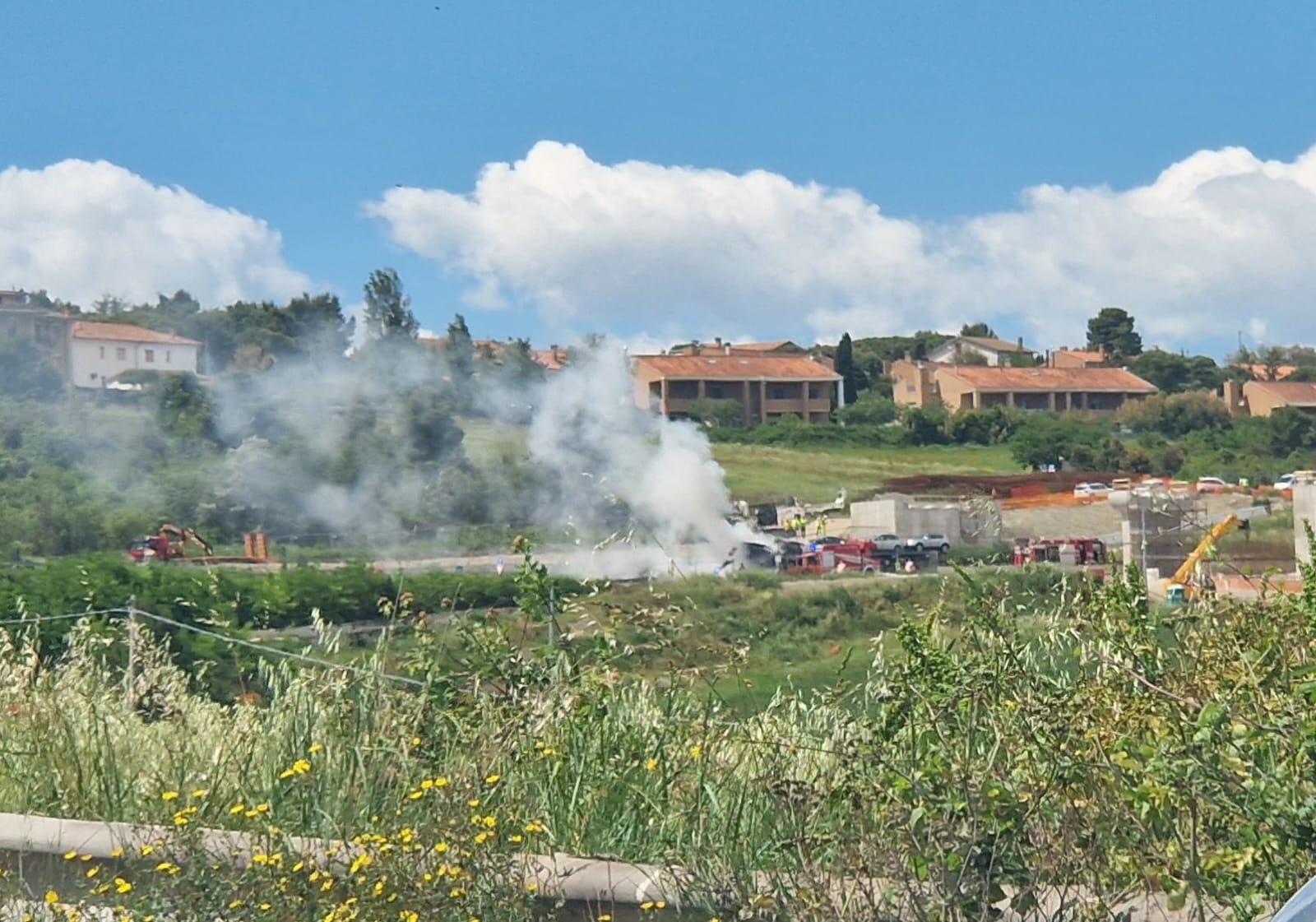 ANCONA – Traffico in tilt lungo la statale a Torrette di Ancona per un incidente che ha coinvolto due auto e un camion che trasportava un trattore nella bisarca. Quest’ultimo ha preso fuoco. Sul posto stanno operando i Vigili del Fuoco del comando provinciale di Ancona con due squadre. Al momento non vengono segnalati feriti ma la Statale è bloccata. Al lavoro anche la Polizia e i Vigili Urbani di Ancona per deviare il traffico dal luogo dell’incidente.