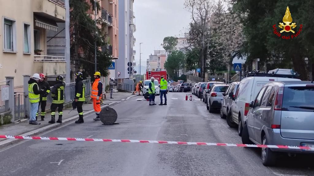 MACERATA – Intervento, a partire dalle 15.30 di oggi, dei vigili del fuoco in via Spalato a Macerata per una fuga di gas metano rilevata all’interno di diversi pozzetti della fibra ottica. In campo due squadre di Macerata con tre automezzi, in collaborazione con i tecnici Italgas per individuare e intercettare la perdita dalla rete di distribuzione. È stata interdetta la viabilità nelle vie limitrofe per consentire le operazioni di soccorso. Sul posto è arrivata anche la Polizia di Stato e la Polizia locale. Nel tardo pomeriggio l’intervento era ancora in corso.