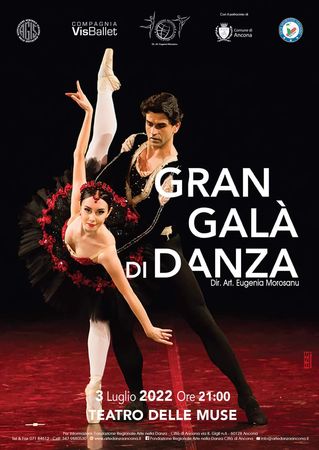 Un grande evento per la città di Ancona, dopo 2 anni di stop forzato torna al Teatro delle Muse il Gran Galà di Danza organizzato dalla Fondazione Regionale Arte nella Danza Città di Ancona, con la direzione artistica di Eugenia Morosanu. L’appuntamento è per domenica 3 luglio alle 21.00. Sul palcoscenico ci saranno anche alcune étoiles internazionali: Ovidiu Iancu Matei e Ada Gonzales, primi ballerini del Teatro dell’Opera Nazionale di Bucarest, Rachele Buriassi e Esnel Ramos, primi ballerini Les Grands Ballets Canadiens de Montréal, Filipa De Castro e Carlos Pinillos, primi ballerini Companhia Nacionale de Bailado di Lisbona, Maria Baranova e Emilio Pavan, primi ballerini Bayerische Staatsoper di Monaco di Baviera e Debora Barontini ed Eleonora Brasili della Compagnia VisBallet.