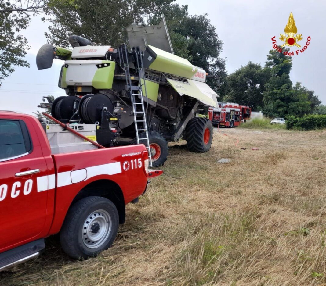 JESI- I Vigili del fuoco sono intervenuti nel primo pomeriggio di oggi a Jesi in via Coppetella per un principio d’incendio che si era innescato nel vano motore di una mietitrebbia.