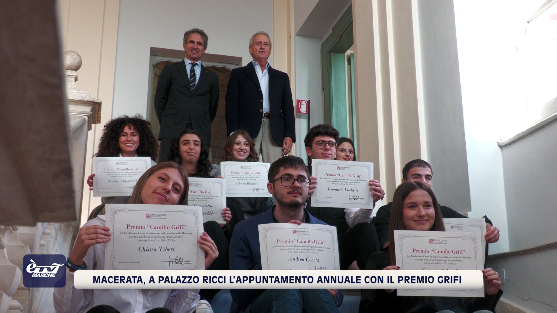 diventata ormai una tradizione la cerimonia di consegna del Premio Camillo Grifi per meriti scolastici a Palazzo Ricci, che cade annualmente l’ultimo venerdì del mese di febbraio. Sono 13 gli studenti risultati assegnatari per l’anno scolastico 2024/2025 della borsa di studio erogata dalla Fondazione Carima: Rebecca Bettucci di Ripe San Ginesio, Laura Canzonetta di San Ginesio, Eleonora Cardarelli di San Ginesio, Andrea Cecchi di Sarnano, Andrea Chiericoni di Sarnano, Martina Gasparetto di Sarnano, Riccardo Latini di Urbisaglia, Leonardo Luchetti di Colmurano, Simone Menchi di San Ginesio, Giorgia Orlandi di Falerone, Francesco Palazzetti di Urbisaglia, Angelo Scarano di San Ginesio e Chiara Tiberi di Sarnano.