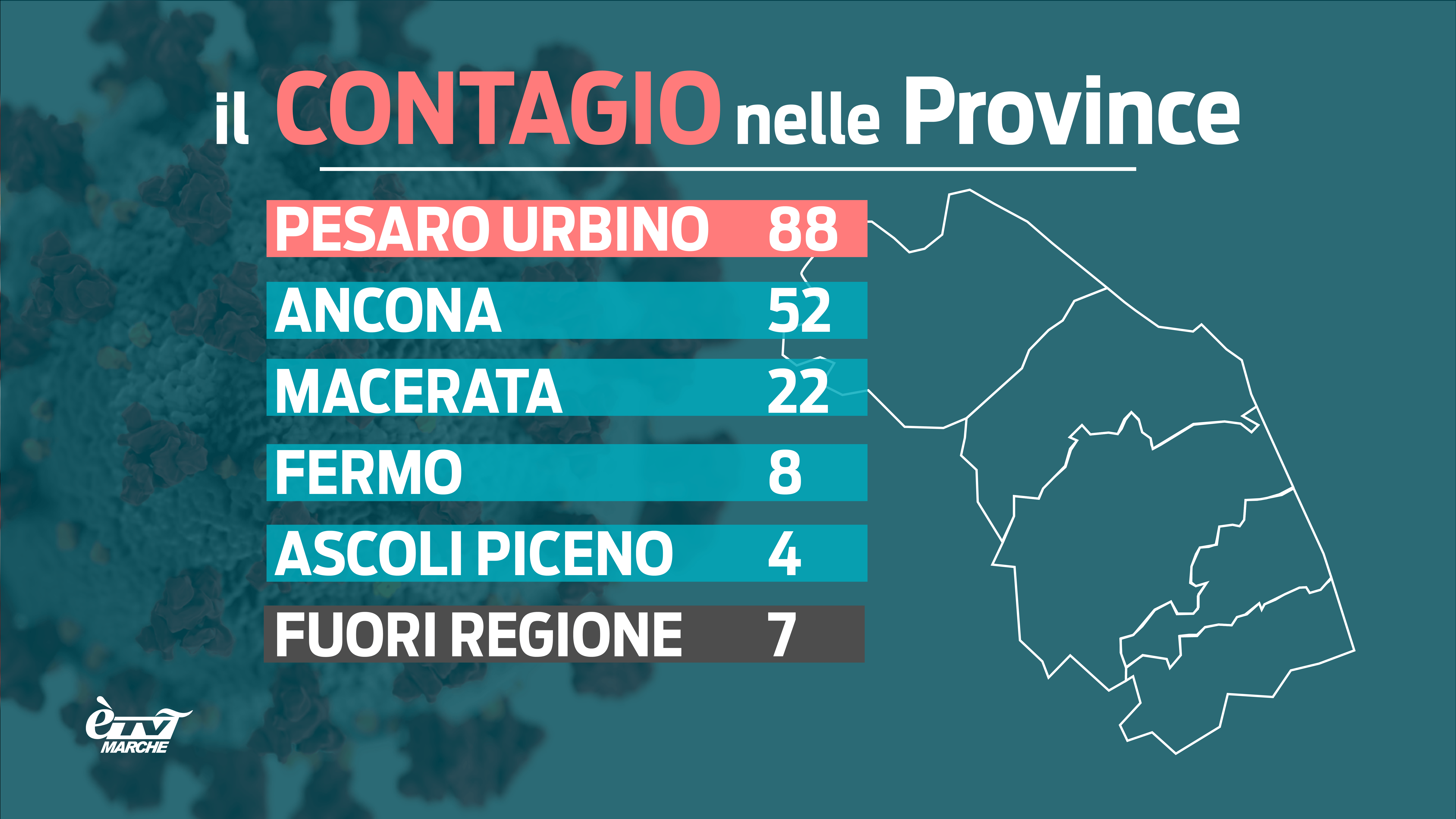 Il contagio galoppa: l’incidenza dei positivi ogni 100 mila abitanti passa da 171 a 177 casi in un giorno, con un rapporto positivi/testati del 14,5% ieri era al 10%, tra tamponi molecolari e antigenici rapidi effettuati. Come spesso accade nel week end, sono stati eseguiti meno test ma sono stati scoperti 181 nuovi casi positivi, di cui 88 nella Provincia di Pesaro Urbino da due giorni in testa alla classifica del contagio.